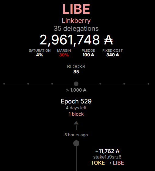 - 추가 혜택: LIBE 풀에 100 ADA 이상 스테이킹 시, 활동 포인트가 100% 보너스로 더 적립됩니다.